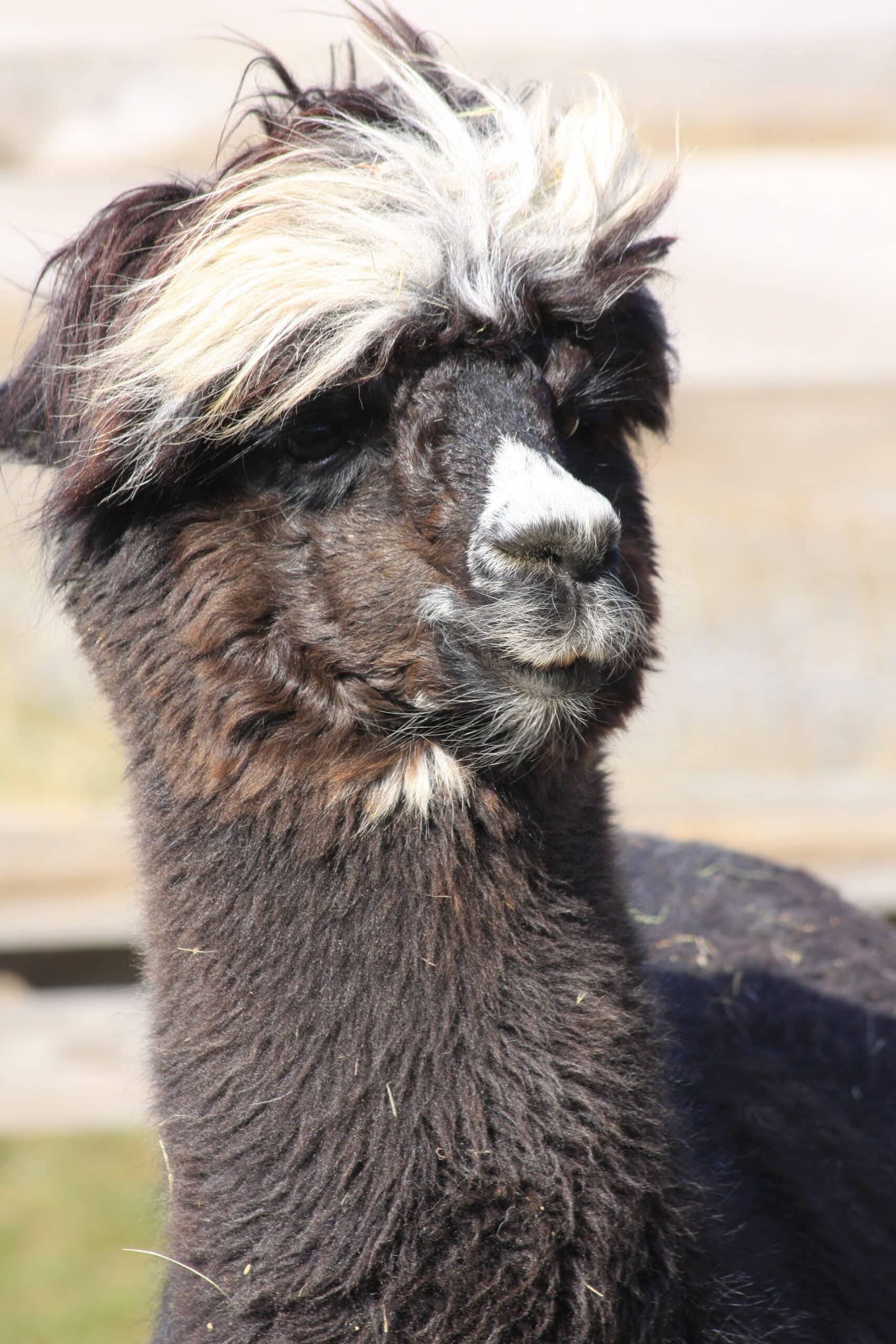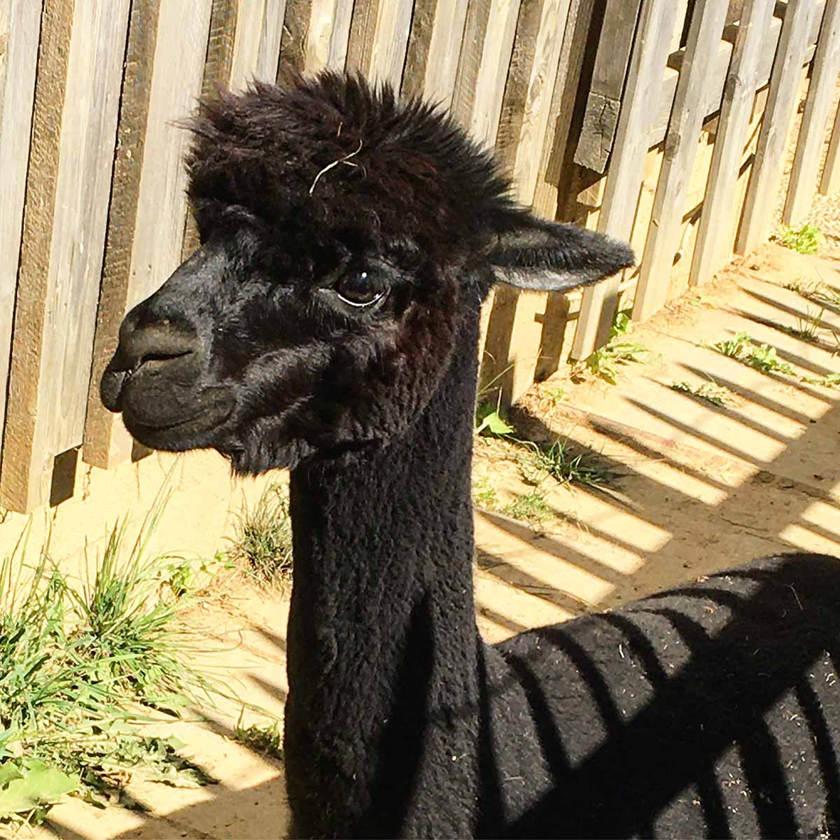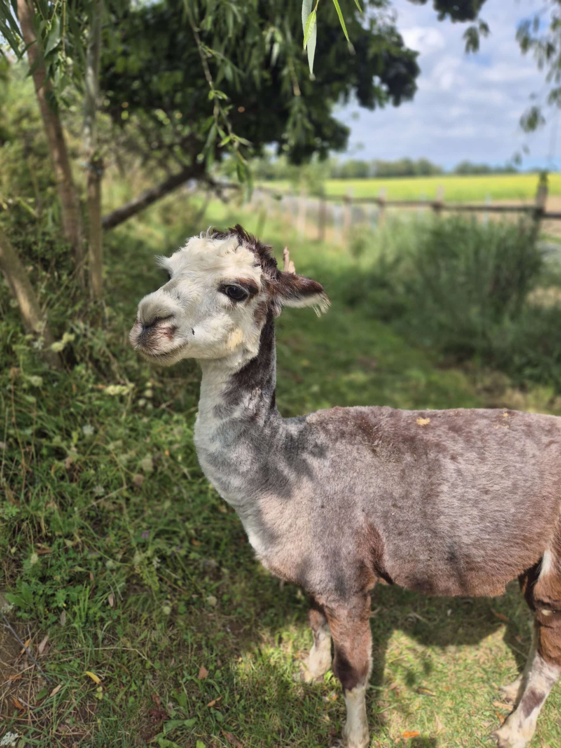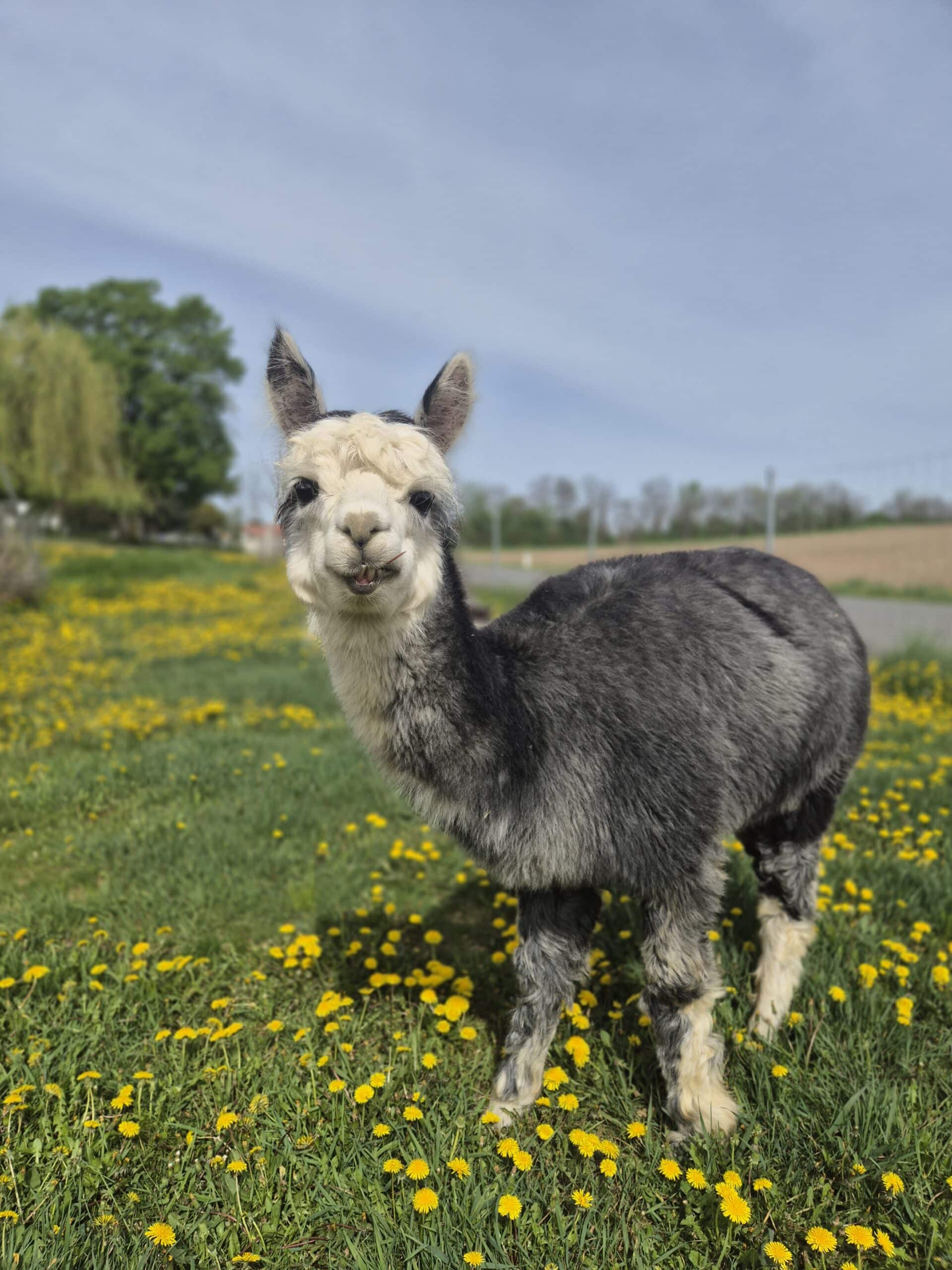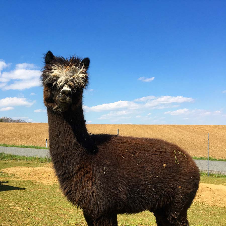 Er ist der Chef der Alpaka-Bande. Er behält den Überblick und die anderen folgen ihm. Ruft man seinen Namen, galoppiert er sogar vom hintersten Winkel der Weide sofort herbei, meist gefolgt von seiner „Gang“.