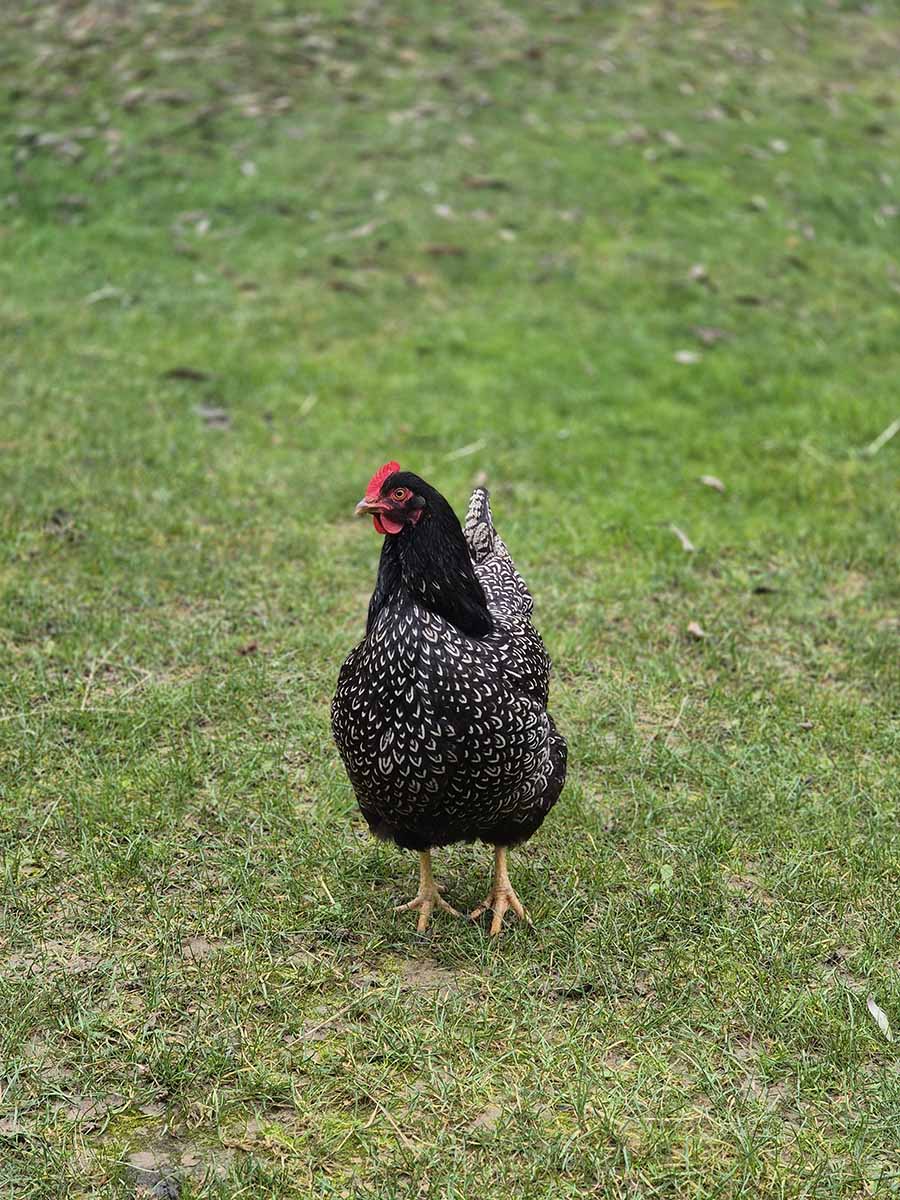 Unsere Hühnerdamen Coco, Cleo und Chloe sind drei ganz besondere Persönlichkeiten. Wenn man leise und langsam ist und sie nicht erschreckt, sind sie zutraulich, neugierig und kommen oft ganz nah heran. Mit viel Ruhe fressen sie sogar aus der Hand, und manchmal lassen sie sich auch vorsichtig streicheln.