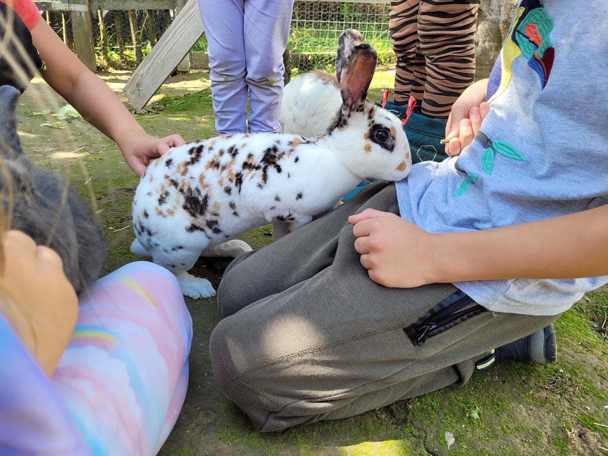 Kaninchen sind faszinierende Tiere: Es macht Freude, sie zu füttern, ihr weiches Fell sanft zu streicheln oder sie einfach still zu beobachten. Besonders spannend ist es, ihre feinen Verhaltensweisen kennenzulernen und zu verstehen – denn sie haben viel zu erzählen, wenn man genau hinsieht. Es wird gehüpft, Haken geschlagen, übermütig gesprungen und sogar ein wenig Fangen gespielt. Sie genießen ihren Freiraum und leben ihren natürlichen Bewegungsdrang mit echter Lebensfreude aus.